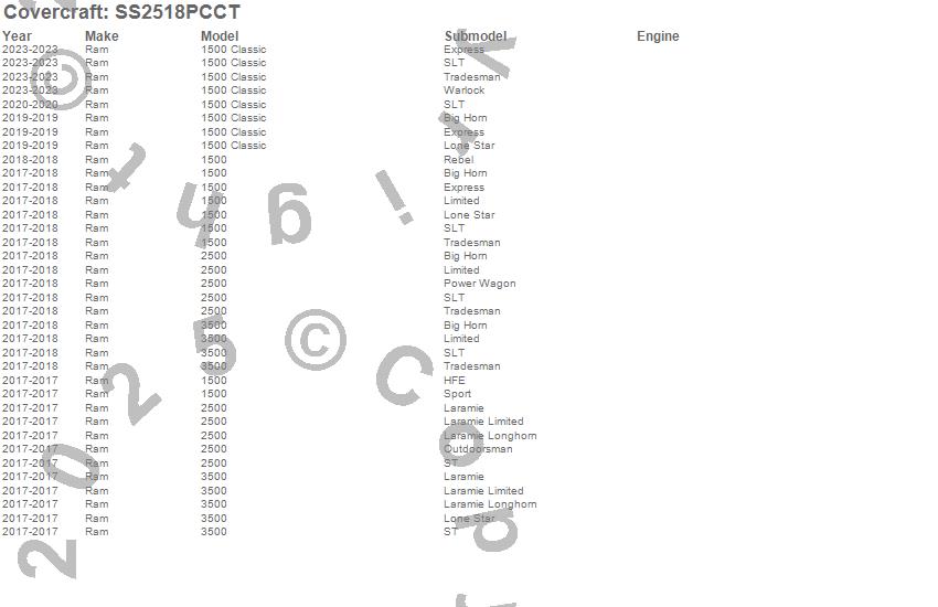 Below is an abbreviated list of applications for the SeatSaver Custom Seat Cover.1500, 1500 Classic, 2500, 3500, Ram, 2024, 2023, 2020, 2019, 2018, 2017