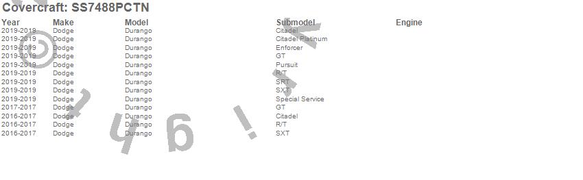 Below is an abbreviated list of applications for the SeatSaver Custom Seat Cover.Durango, Dodge, 2019, 2017, 2016