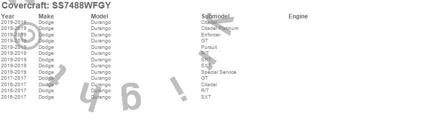 Below is an abbreviated list of applications for the SeatSaver Custom Seat Cover.Durango, Dodge, 2019, 2017, 2016
