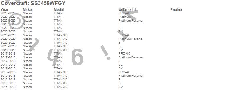 Below is an abbreviated list of applications for the SeatSaver Custom Seat Cover.TITAN, TITAN XD, Nissan, 2024, 2020, 2018, 2017, 2016