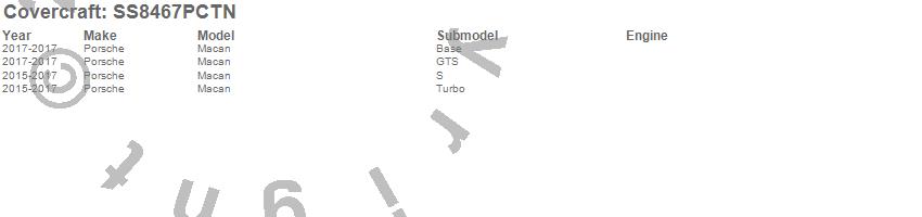 Below is an abbreviated list of applications for the SeatSaver Custom Seat Cover.Macan, Porsche, 2017, 2016, 2015