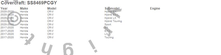 Below is an abbreviated list of applications for the SeatSaver Custom Seat Cover.CR-V, Honda, 2020, 2019, 2018, 2017