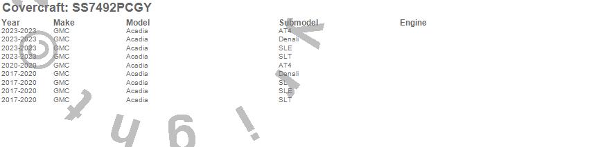 Below is an abbreviated list of applications for the SeatSaver Custom Seat Cover.Acadia, GMC, 2023, 2020, 2019, 2018, 2017