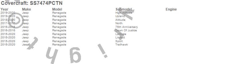 Below is an abbreviated list of applications for the SeatSaver Custom Seat Cover.Renegade, Jeep, 2020, 2019, 2018, 2017, 2016, 2015