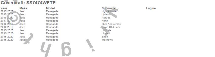 Below is an abbreviated list of applications for the SeatSaver Custom Seat Cover.Renegade, Jeep, 2020, 2019, 2018, 2017, 2016, 2015