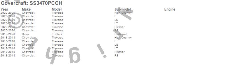 Below is an abbreviated list of applications for the SeatSaver Custom Seat Cover.Enclave, Traverse, Buick, Chevrolet, 2020, 2019, 2018