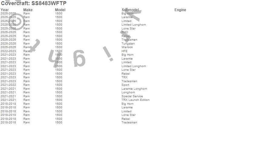 Below is an abbreviated list of applications for the SeatSaver Custom Seat Cover.1500, Ram, 2026, 2025, 2024, 2023, 2022, 2021, 2018