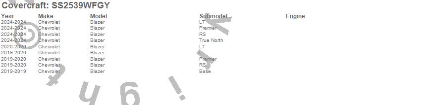 Below is an abbreviated list of applications for the SeatSaver Custom Seat Cover.Blazer, Chevrolet, 2025, 2024, 2020, 2019
