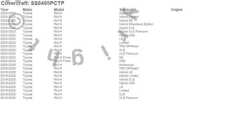 Below is an abbreviated list of applications for the SeatSaver Custom Seat Cover.RAV4, RAV4 Prime, Toyota, 2025, 2024, 2023, 2020, 2019