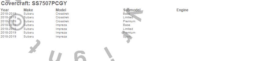 Below is an abbreviated list of applications for the SeatSaver Custom Seat Cover.Crosstrek, Impreza, Subaru, 2025, 2024, 2019, 2018