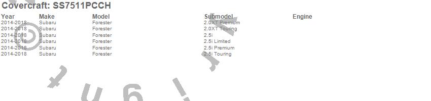 Below is an abbreviated list of applications for the SeatSaver Custom Seat Cover.Forester, Subaru, 2018, 2017, 2016, 2015, 2014