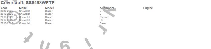 Below is an abbreviated list of applications for the SeatSaver Custom Seat Cover.Blazer, Chevrolet, 2020, 2019