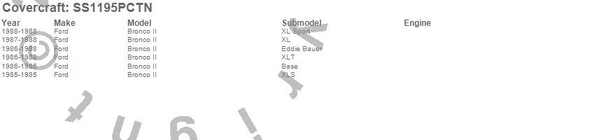 Below is an abbreviated list of applications for the SeatSaver Custom Seat Cover.Bronco II, Ford, 1988, 1987, 1986, 1985