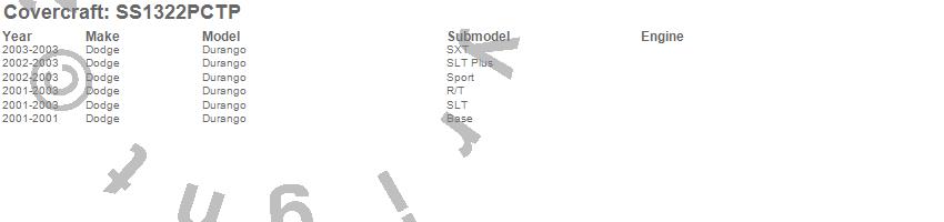Below is an abbreviated list of applications for the SeatSaver Custom Seat Cover.Durango, Dodge, 2003, 2002, 2001