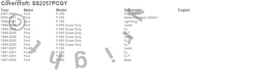 Below is an abbreviated list of applications for the SeatSaver Custom Seat Cover.F-150, F-250 Super Duty, F-350 Super Duty, Ford, 2001, 2000, 1999, 1998, 1997