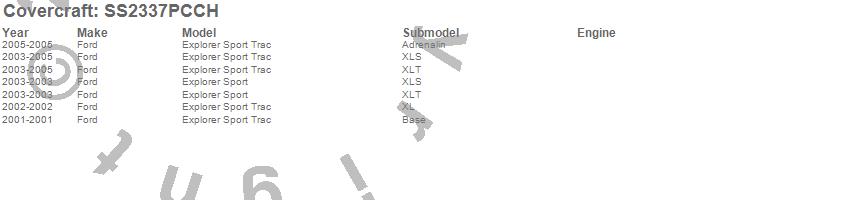 Below is an abbreviated list of applications for the SeatSaver Custom Seat Cover.Explorer Sport, Explorer Sport Trac, Ford, 2005, 2004, 2003, 2002, 2001