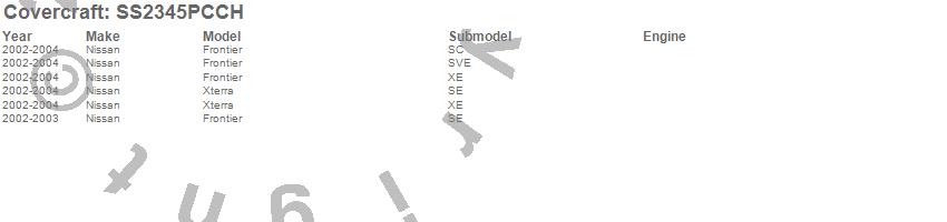 Below is an abbreviated list of applications for the SeatSaver Custom Seat Cover.Frontier, Xterra, Nissan, 2004, 2003, 2002