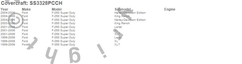 Below is an abbreviated list of applications for the SeatSaver Custom Seat Cover.F-250 Super Duty, F-350 Super Duty, Ford, 2006, 2005, 2004, 2003, 2002, 2001, 2000, 1999