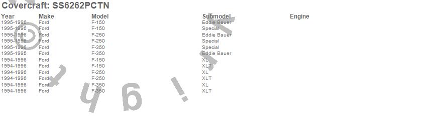 Below is an abbreviated list of applications for the SeatSaver Custom Seat Cover.F-150, F-250, F-350, Ford, 1996, 1995, 1994