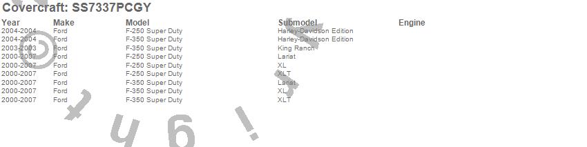 Below is an abbreviated list of applications for the SeatSaver Custom Seat Cover.F-250 Super Duty, F-350 Super Duty, Ford, 2007, 2006, 2005, 2004, 2003, 2002, 2001, 2000