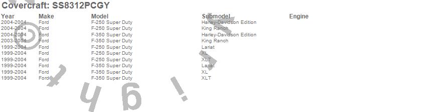Below is an abbreviated list of applications for the SeatSaver Custom Seat Cover.F-250 Super Duty, F-350 Super Duty, Ford, 2004, 2003, 2002, 2001, 2000, 1999