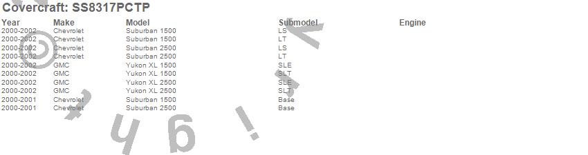 Below is an abbreviated list of applications for the SeatSaver Custom Seat Cover.Suburban 1500, Suburban 2500, Yukon XL 1500, Yukon XL 2500, Chevrolet, GMC, 2002, 2001, 2000
