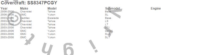 Below is an abbreviated list of applications for the SeatSaver Custom Seat Cover.Escalade, Tahoe, Yukon, Cadillac, Chevrolet, GMC, 2006, 2005, 2004, 2003