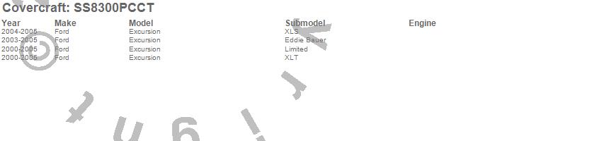 Below is an abbreviated list of applications for the SeatSaver Custom Seat Cover.Excursion, Ford, 2005, 2004, 2003, 2002, 2001, 2000