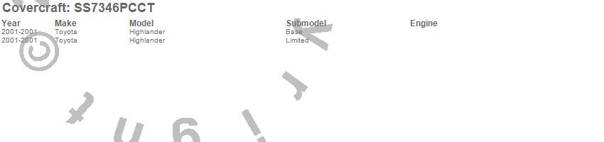 Below is an abbreviated list of applications for the SeatSaver Custom Seat Cover.Highlander, Toyota, 2001
