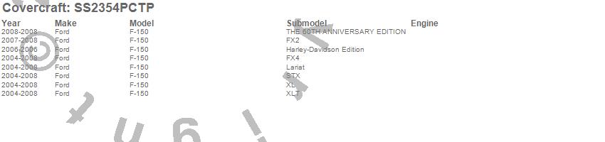Below is an abbreviated list of applications for the SeatSaver Custom Seat Cover.F-150, Ford, 2008, 2007, 2006, 2005, 2004