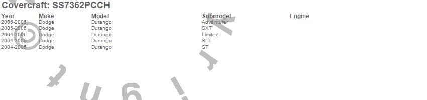 Below is an abbreviated list of applications for the SeatSaver Custom Seat Cover.Durango, Dodge, 2006, 2005, 2004