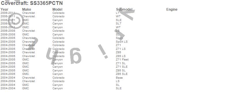 Below is an abbreviated list of applications for the SeatSaver Custom Seat Cover.Canyon, Colorado, Chevrolet, GMC, 2011, 2010, 2009, 2008, 2007, 2006, 2005, 2004