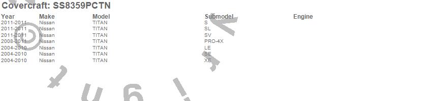Below is an abbreviated list of applications for the SeatSaver Custom Seat Cover.TITAN, Nissan, 2011, 2010, 2009, 2008, 2007, 2006, 2005, 2004