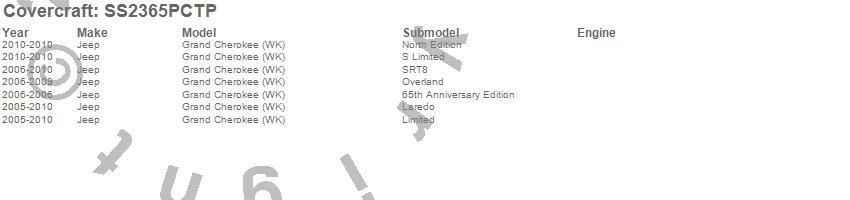 Below is an abbreviated list of applications for the SeatSaver Custom Seat Cover.Grand Cherokee (WK), Jeep, 2010, 2009, 2008, 2007, 2006, 2005