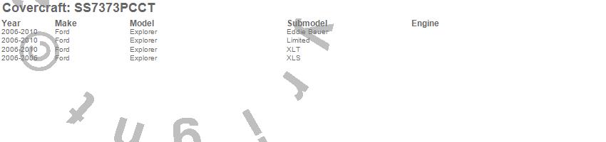 Below is an abbreviated list of applications for the SeatSaver Custom Seat Cover.Explorer, Ford, 2010, 2009, 2008, 2007, 2006
