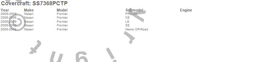 Below is an abbreviated list of applications for the SeatSaver Custom Seat Cover.Frontier, Nissan, 2009, 2008, 2007, 2006, 2005