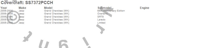 Below is an abbreviated list of applications for the SeatSaver Custom Seat Cover.Grand Cherokee (WK), Jeep, 2006, 2005