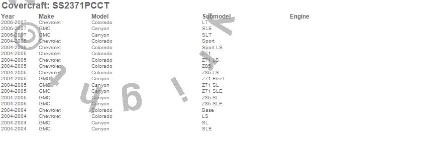 Below is an abbreviated list of applications for the SeatSaver Custom Seat Cover.Canyon, Colorado, Chevrolet, GMC, 2007, 2006, 2005, 2004