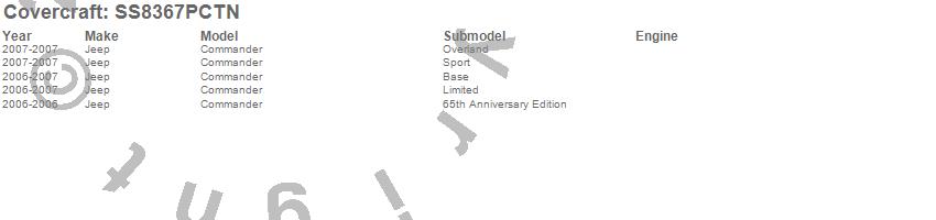 Below is an abbreviated list of applications for the SeatSaver Custom Seat Cover.Commander, Jeep, 2007, 2006