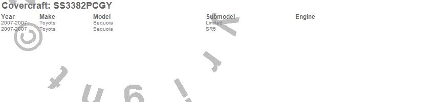 Below is an abbreviated list of applications for the SeatSaver Custom Seat Cover.Sequoia, Toyota, 2007