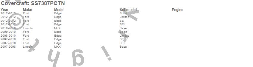 Below is an abbreviated list of applications for the SeatSaver Custom Seat Cover.Edge, MKX, Ford, Lincoln, 2013, 2012, 2010, 2009, 2008, 2007