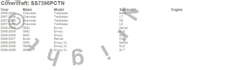 Below is an abbreviated list of applications for the SeatSaver Custom Seat Cover.Envoy, Envoy XL, Rainier, Trailblazer, Buick, Chevrolet, GMC, 2009, 2008, 2007, 2006