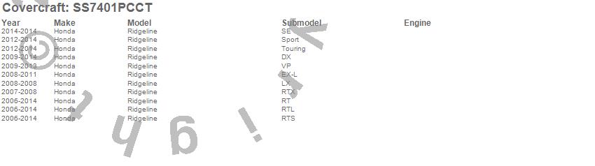 Below is an abbreviated list of applications for the SeatSaver Custom Seat Cover.Ridgeline, Honda, 2014, 2013, 2012, 2011, 2010, 2009, 2008, 2007, 2006