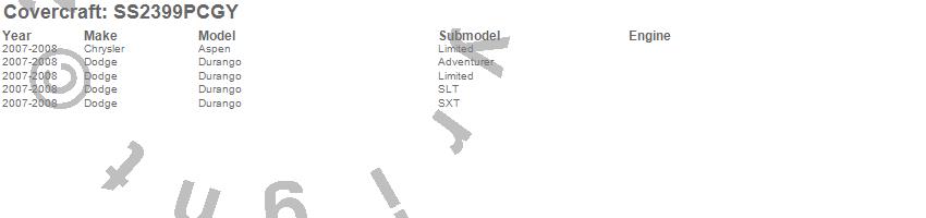 Below is an abbreviated list of applications for the SeatSaver Custom Seat Cover.Aspen, Durango, Chrysler, Dodge, 2008, 2007