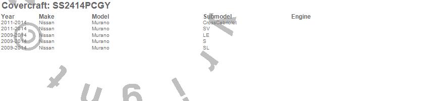 Below is an abbreviated list of applications for the SeatSaver Custom Seat Cover.Murano, Nissan, 2014, 2013, 2012, 2011, 2010, 2009