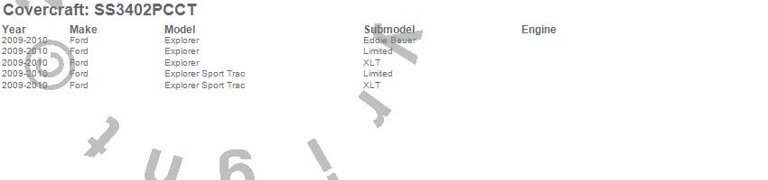 Below is an abbreviated list of applications for the SeatSaver Custom Seat Cover.Explorer, Explorer Sport Trac, Ford, 2010, 2009