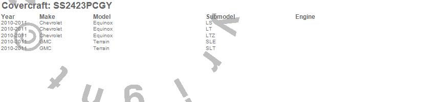 Below is an abbreviated list of applications for the SeatSaver Custom Seat Cover.Equinox, Terrain, Chevrolet, GMC, 2011, 2010