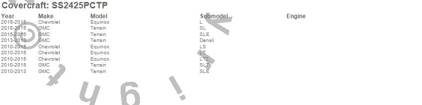 Below is an abbreviated list of applications for the SeatSaver Custom Seat Cover.Equinox, Terrain, Chevrolet, GMC, 2015, 2014, 2013, 2012, 2011, 2010