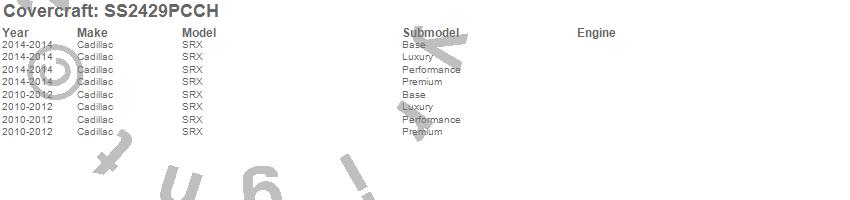 Below is an abbreviated list of applications for the SeatSaver Custom Seat Cover.SRX, Cadillac, 2014, 2012, 2011, 2010