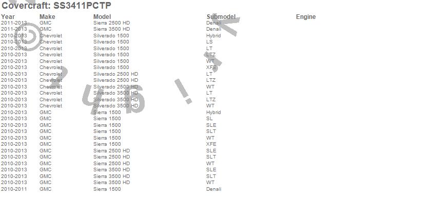 Below is an abbreviated list of applications for the SeatSaver Custom Seat Cover.Sierra 1500, Sierra 2500 HD, Sierra 3500 HD, Silverado 1500, Silverado 2500 HD, Silverado 3500 HD, Chevrolet, GMC, 2013, 2012, 2011, 2010
